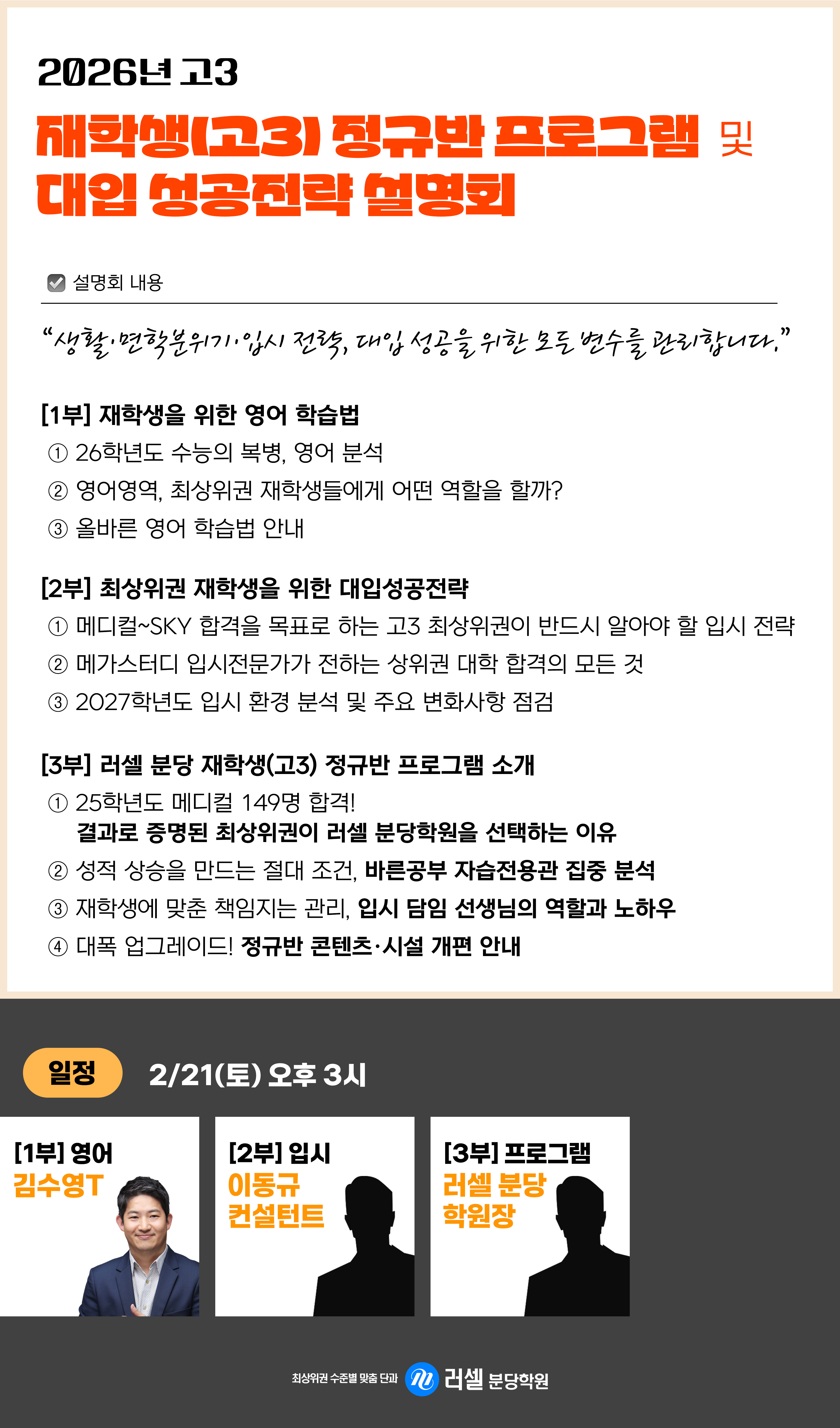 ¡æ  [¼³¸íȸ] ÀçÇлý(°í3) Á¤±Ô¹Ý ÇÁ·Î±×·¥ & ´ëÀÔ ¼º°øÀü·« ¼³¸íȸ (2/21)